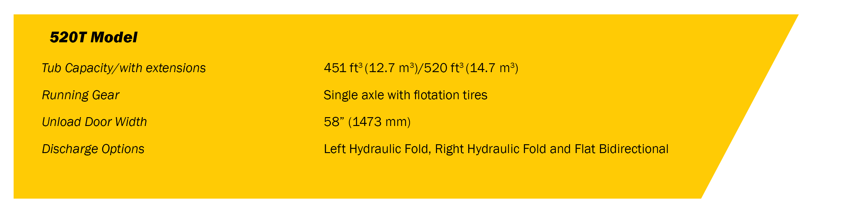 Single axle and high flotation tires (445/50R-22.5) are standard equipment to meet the extremes of North American weather.